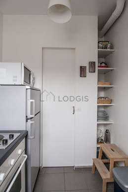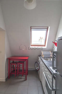 This apartment consists of a living room with wooden floor and its double-glazed windows and view on road. This quiet living room is furnished and equipped for a comfortable stay: linen, quilt, 2 armchair(s), coffee table, desk, wardrobe, shelves, cupboard2 bed(s) of 80cm.