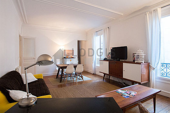 This apartment consists of a fabulous living room with wooden floor and its double-glazed windows and view on road. This very quiet living room is furnished and equipped for a comfortable stay: tv, sofa, 2 armchair(s), dining table, coffee table, desk, shelves, storage space, 5 chair(s)1 sofabed(s) of 140cm.