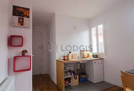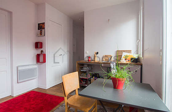 This apartment consists of a attractive living room with wooden floor and its double-glazed windows and view on courtyard. This very quiet living room is furnished and equipped for a comfortable stay: dining table, cupboard, 2 chair(s), stool1 sofabed(s) of 140cm.