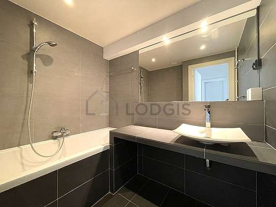 This apartment is equipped with a pleasant bathroom. This bathroom is furnished with all the equipment you need for a comfortable stay: cupboard, bath tub, sink, towel drying radiator. The toilets are separated from the bathroom and located in an independant room.