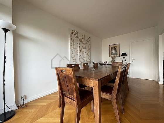 In order to share your meals in a convivial atmosphere during your stay in Paris, this apartment offers a pleasant dining room that can welcome up to 8 guests thanks to its dining table, sideboard, 8 chair(s).