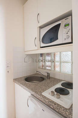 This apartment is equipped with a great bathroom and bright with double-glazed windows. This bathroom is furnished with all the equipment you need for a comfortable stay: bath towels, shelves, cupboard, separate shower, hair-dryer, sink, towel drying radiator. The toilets are located in the bathroom.