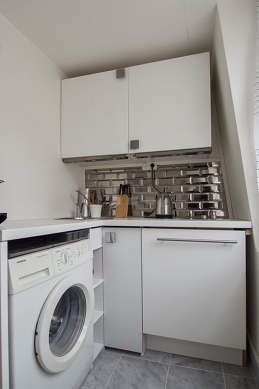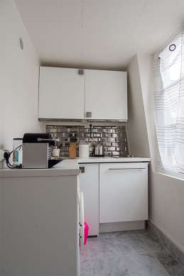 This apartment consists of a pleasant living room with wooden floor and its windows and view on courtyard. This quiet living room is furnished and equipped for a comfortable stay: tv, linen, quilt, sofa, dining table, coffee table, desk, closet, storage space, 4 chair(s), bedside table1 sofabed(s) of 120cm, 1 bed(s) of 120cm.
