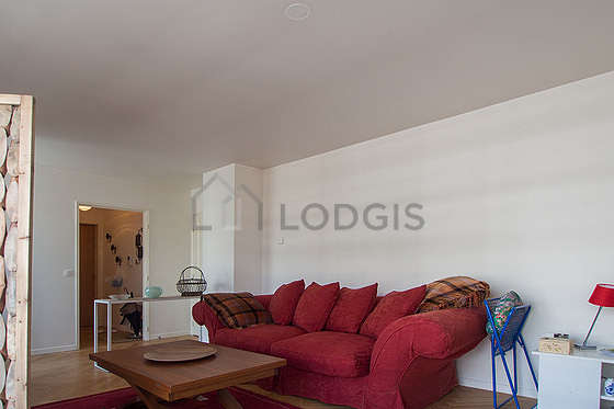 This apartment consists of a wonderful living room with wooden floor and its double-glazed windows with balcony and view on road. This quiet living room is furnished and equipped for a comfortable stay: tv, sofa, dining table, sideboard, 1 chair(s).