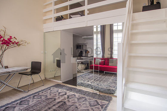 Thanks to its lovely height-under-ceiling, amezzanine was set up in this apartment , thus offering you an extra room supplementary equipped with tv, linen, quilt, tv stand.