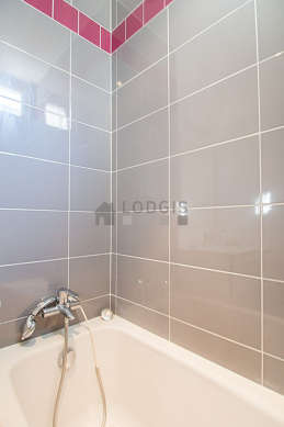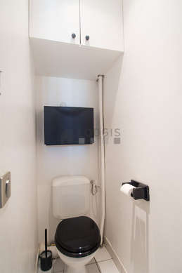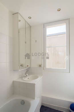 This apartment is equipped with a bathroom very bright with double-glazed windows. This bathroom is furnished with all the equipment you need for a comfortable stay: cupboard, bath tub, sink, mirror. The toilets are separated from the bathroom and located in an independant room.