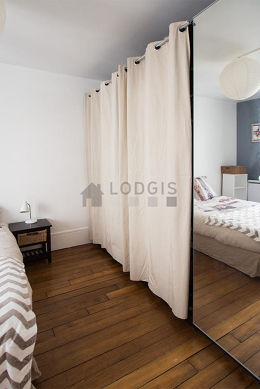 Living roomThis apartment consists of a wonderful living room with wooden floor view on road. This very quiet living room is furnished and equipped for a comfortable stay: tv, sofa, coffee table.