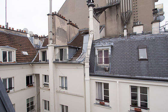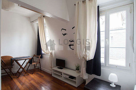 This apartment consists of a wonderful living room with wooden floor view on courtyard. This very quiet living room is furnished and equipped for a comfortable stay: tv, linen, quilt, sofa, dining table, coffee table, desk, bookcase, shelves, cupboard, 2 chair(s), airer, tv stand1 sofabed(s) of 140cm.