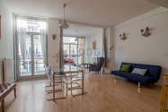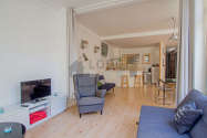 Living roomThis apartment consists of a attractive living room with wooden floor view on road. This very quiet living room is furnished and equipped for a comfortable stay: tv, sofa, dining table, coffee table, closet, 1 chair(s), wall light2 sofabed(s) of 160cm.