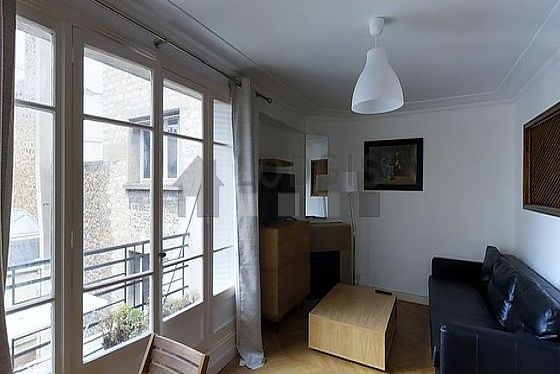This apartment consists of a beautiful living room with wooden floor view on courtyard. This very quiet living room is furnished and equipped for a comfortable stay: tv, sofa, dining table, coffee table, closet, 1 chair(s), tv stand.