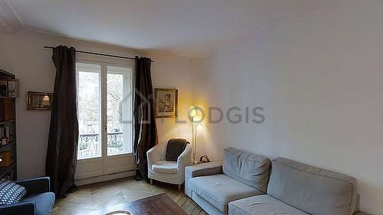 This apartment consists of a fabulous living room with wooden floor view on road. This very quiet living room is furnished and equipped for a comfortable stay: tv, sofa, 1 armchair(s), coffee table, sideboard.