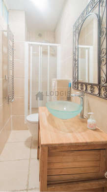 This apartment consists of a wonderful living room with wooden floor and its double-glazed windows and view on road. This quiet living room is furnished and equipped for a comfortable stay: tv, dining table, 4 chair(s)1 sofabed(s) of 140cm.