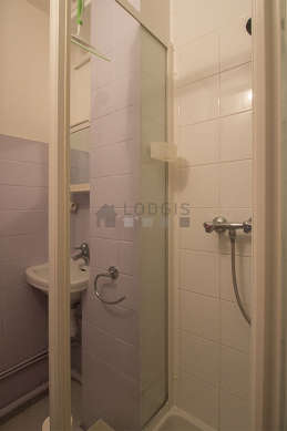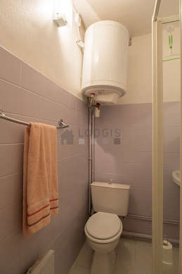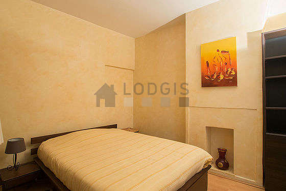 This apartment consists of a charming living room with wooden floor view on road. This very quiet living room is furnished and equipped for a comfortable stay: tv, sofa, dining table, 4 chair(s), tv stand.