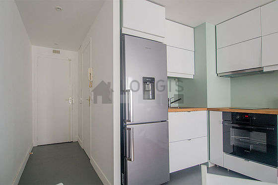 This apartment consists of great kitchen with concrete floor and all the essential equipment for your daily life: hob, refrigerator, freezer, microwave oven, extractor hood, toaster, kettle, coffee-maker, cupboard.