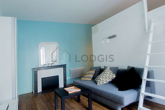 Living roomThis apartment consists of a fabulous living room with wooden floor view on courtyard. This very quiet living room is furnished and equipped for a comfortable stay: tv, sofa, dining table, coffee table, desk, shelves, cupboard, 3 chair(s).