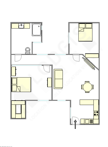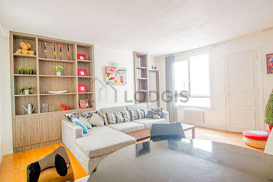 This apartment consists of a wonderful living room with wooden floor view on courtyard. This very quiet living room is furnished and equipped for a comfortable stay: tv, dining table, coffee table, shelves, storage space, 6 chair(s)1 sofabed(s) of 140cm.