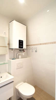 This apartment consists of beautiful kitchen close to the living room with wooden floor and all the essential equipment for your daily life: hob, refrigerator, combined microwave oven, freezer, kettle, shelves, cupboard, crockery.