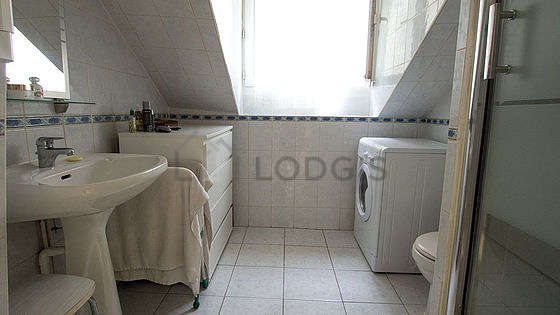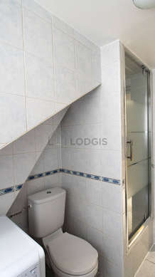 This apartment is equipped with a pleasant bathroom and bright with double-glazed windows. This bathroom is furnished with all the equipment you need for a comfortable stay: bath towels, shelves, cupboard, separate shower, sink, towel drying radiator. The toilets are located in the bathroom.