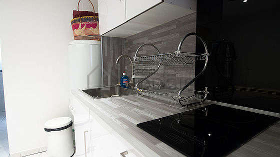 This apartment consists of beautiful kitchen with wooden floor and all the necessary equipment for your daily life: hob, refrigerator, microwave oven, freezer, extractor hood, kettle, coffee-maker, dining table, shelves, cupboard, crockery, 1 chair(s).