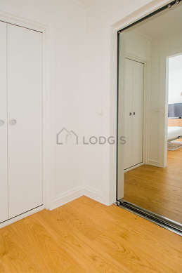 Living roomThis apartment consists of a wonderful living room with wooden floor view on garden. This very quiet living room is furnished and equipped for a comfortable stay: tv, linen, quilt, sofa, coffee table, storage space, 1 chair(s)1 murphy bed(s) of 140cm.