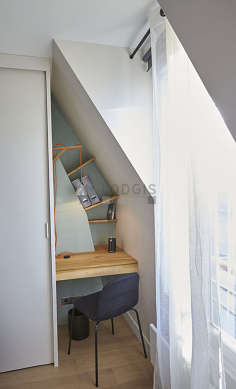 With wooden floor view on courtyard, this fabulous room offre provides the necessary equipment for you to serenely rest during your stay: linen, quilt, desk, shelves, closet, 1 chair(s), bedside table1 bed(s) of 140cm.