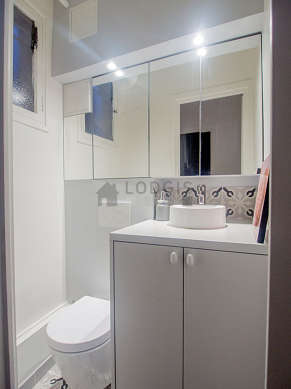 This apartment is equipped with a great bathroom and bright. This bathroom is furnished with all the equipment you need for a comfortable stay: bath towels, cupboard, bath tub, hair-dryer, sink. The toilets are separated from the bathroom and located in an independant room.