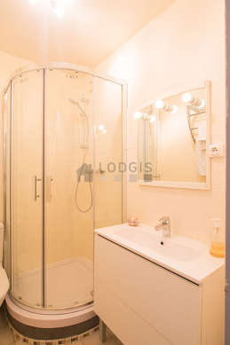 This apartment consists of great kitchen with tile floor and all the essential equipment for your daily life: hob, refrigerator, combined microwave oven, freezer, extractor hood, toaster, kettle, coffee-maker, shelves, cupboard, crockery, stool, bar.