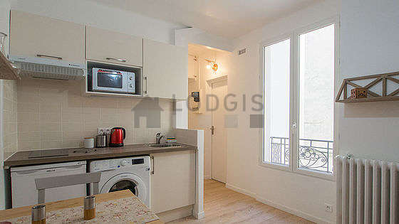 This apartment consists of a fabulous living room with wooden floor and its double-glazed windows and view on courtyard. This very quiet living room is furnished and equipped for a comfortable stay: tv, linen, quilt, dining table, shelves, closet, 2 chair(s), stool1 infant bed(s) of 80cm, 1 sofabed(s) of 140cm.
