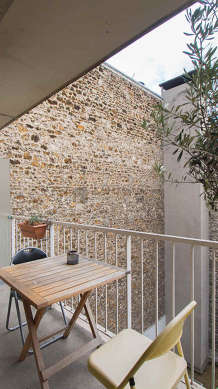With concrete floor the terrace of this apartment will charm. This quiet and very bright outdoor space furnished with dining table, 2 chair(s) will enable you to fully enjoy your Parisian stay, especially in the sunny days.