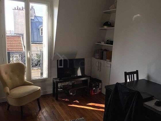 This apartment consists of a attractive living room with wooden floor view on road. This very quiet living room is furnished and equipped for a comfortable stay: tv, dining table, shelves, 4 chair(s).