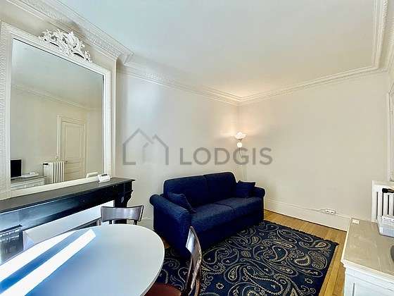 This apartment consists of a pleasant living room with wooden floor view on road. This very quiet living room is furnished and equipped for a comfortable stay: tv, 4 chair(s)1 sofabed(s) of 140cm.
