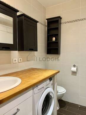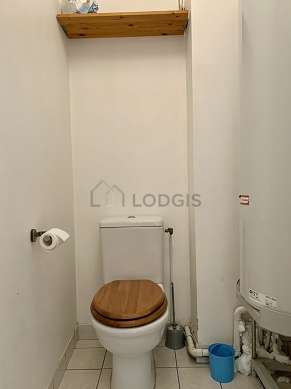 This duplex is equipped with a bathroom. This bathroom is furnished with all the equipment you need for a comfortable stay: shelves, cupboard, bath tub, airer, sink, mirror, towel rack, towel drying radiator, ventilator. The toilets are separated from the bathroom and located in an independant room.