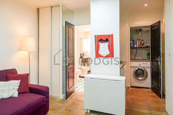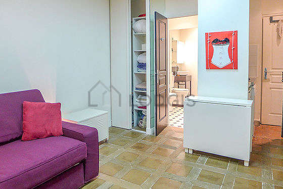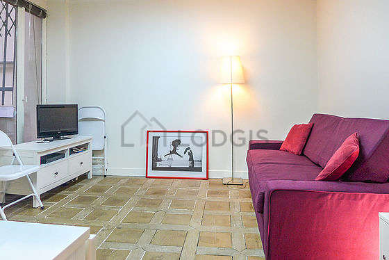 Living roomThis apartment consists of a beautiful living room with tile floor and its double-glazed windows. This very quiet living room is furnished and equipped for a comfortable stay: tv, linen, quilt, sofa, 1 chair(s)1 sofabed(s) of 140cm.