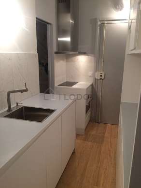 This apartment consists of beautiful kitchen with wooden floor and all the necessary equipment for your daily life: hob, refrigerator, oven, microwave oven, combined microwave oven, freezer, extractor hood, coffee-maker, shelves, closet, cupboard, crockery, airer, bin.