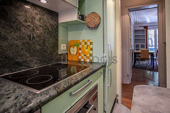 This apartment consists of beautiful kitchen with tile floor and all the necessary equipment for your daily life: hob, refrigerator, oven, freezer, dining table, crockery, 1 chair(s).