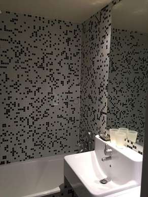 This apartment is equipped with a great bathroom. This bathroom is furnished with all the equipment you need for a comfortable stay: bath towels, storage space, bath tub, 1 deckchair(s), hair-dryer, airer, sink, mirror, towel rack, bin, towel drying radiator, carpet, ventilator. The toilets are separated from the bathroom and located in an independant room.