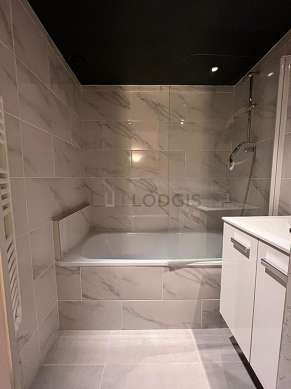 This apartment is equipped with a pleasant bathroom. This bathroom is furnished with all the equipment you need for a comfortable stay: bath towels, cupboard, sink, towel drying radiator. The toilets are separated from the bathroom and located in an independant room.