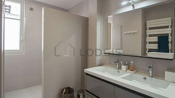 This apartment is equipped with a pleasant bathroom and bright. This bathroom is furnished with all the equipment you need for a comfortable stay: bath towels, cupboard, separate shower, sink, towel drying radiator. The toilets are separated from the bathroom and located in an independant room.