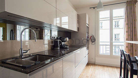 In order to share your meals in a convivial atmosphere during your stay parisian, this apartment offers a pleasant dining room that can welcome up to 8 guests thanks to its dining table, closet, 8 chair(s).