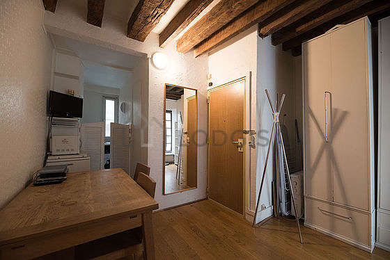 Living roomThis apartment consists of a living room with wooden floor and its windows. This living room is furnished and equipped for a comfortable stay: tv, linen, quilt, sofa, dining table, storage space, wooden beams, 1 chair(s)1 sofabed(s) of 130cm.