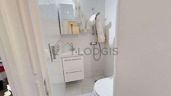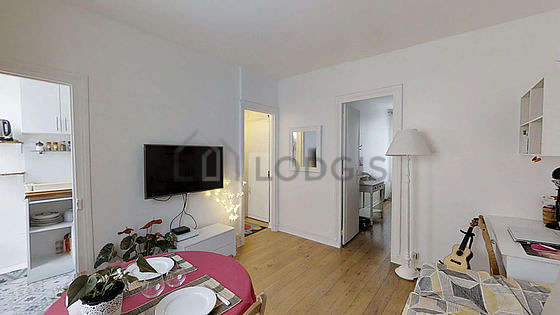 This apartment consists of a fabulous living room with wooden floor and its double-glazed windows and view on road. This very quiet living room is furnished and equipped for a comfortable stay: tv, linen, quilt, refrigerator, sofa, 1 armchair(s), dining table, desk, bookcase, shelves, crockery, 2 chair(s), floor lamp, lamp, tv stand, mirror, curtains.