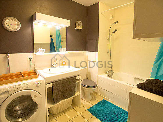This apartment consists of a beautiful living room with wooden floor and its windows. This very quiet living room is furnished and equipped for a comfortable stay: tv, linen, quilt, sofa, dining table, coffee table, bookcase, stool, floor lamp, tv stand, curtains, painting1 sofabed(s) of 140cm.