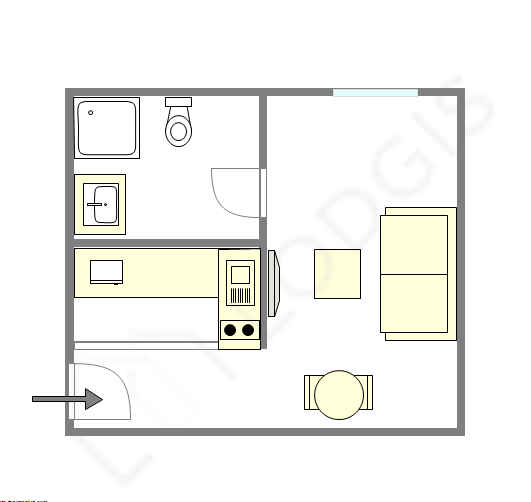 This apartment consists of a beautiful living room with wooden floor and its double-glazed windows. This very quiet living room is furnished and equipped for a comfortable stay: tv, linen, quilt, refrigerator, sofa, desk, wardrobe, bookcase, shelves, cupboard, crockery, 1 chair(s)1 sofabed(s) of 140cm.