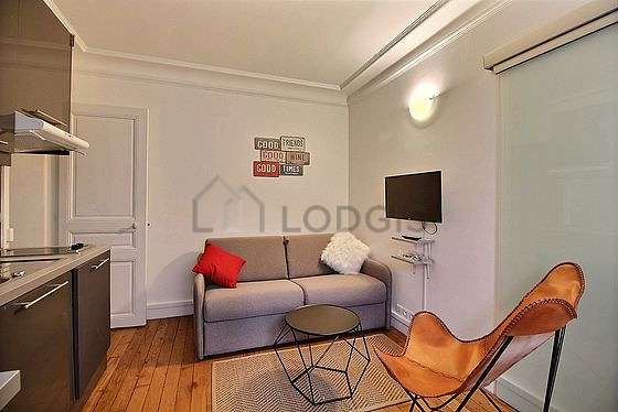 This apartment consists of a fabulous living room with wooden floor and its double-glazed windows. This very quiet living room is furnished and equipped for a comfortable stay: tv, sofa, 1 armchair(s), dining table, stool, carpet.
