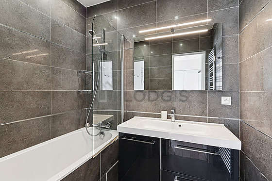This apartment is equipped with a bathroom. This bathroom is furnished with all the equipment you need for a comfortable stay: bath tub. The toilets are separated from the bathroom and located in an independant room.