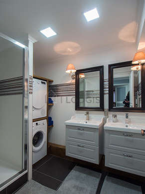 This apartment is equipped with a great bathroom and bright. This bathroom is furnished with all the equipment you need for a comfortable stay: bath towels, cupboard, separate shower, sink, towel drying radiator. The toilets are separated from the bathroom and located in an independant room.