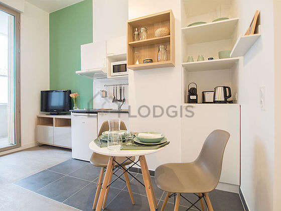 The terrace of this apartment will charm. This very quiet and very bright outdoor space furnished with dining table, 2 chair(s) will enable you to fully enjoy your Parisian stay, especially in the sunny days.