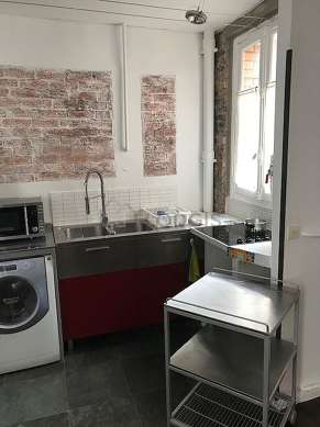 This apartment consists of beautiful kitchen with tile floor and all the necessary equipment for your daily life: hob, refrigerator, microwave oven, coffee-maker, crockery, bin.