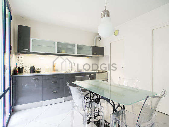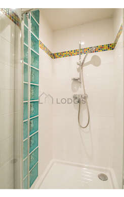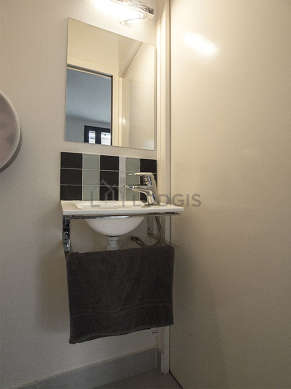 This apartment is equipped with a great bathroom. This bathroom is furnished with all the equipment you need for a comfortable stay: shelves, cupboard, separate shower, sink, mirror, towel drying radiator. The toilets are separated from the bathroom and located in an independant room.