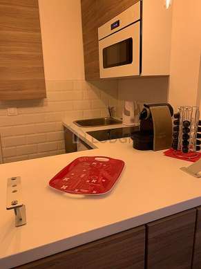 Living roomThis apartment consists of a beautiful living room with tile floor and its double-glazed windows. This very quiet living room is furnished and equipped for a comfortable stay: tv, linen, quilt, sofa, coffee table1 murphy bed(s) of 140cm.